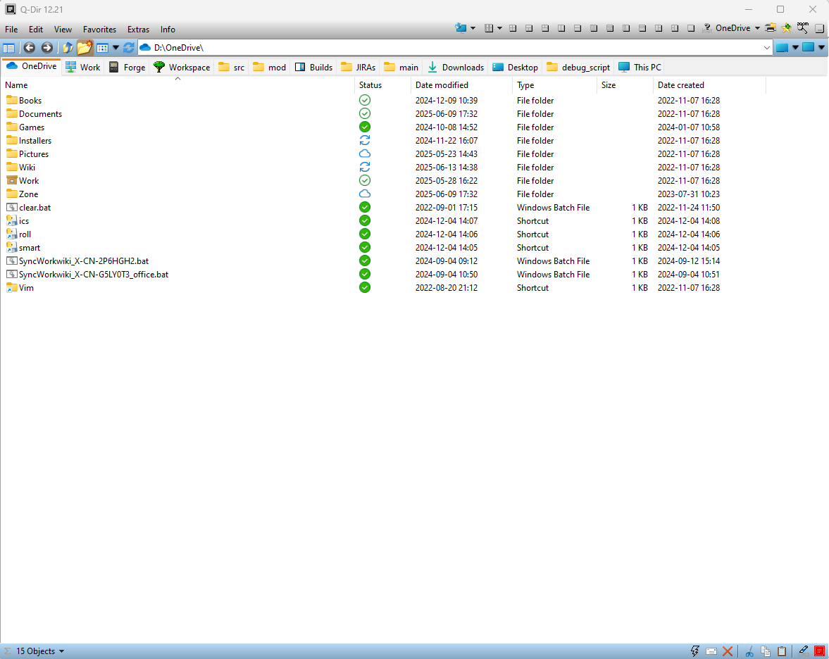 2) Open several tabs to access all frequently used directories. Fine-tune each tab as needed (e.g., sorting, view mode, window position), then save the entire configuration to Favorites.